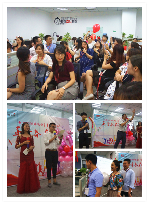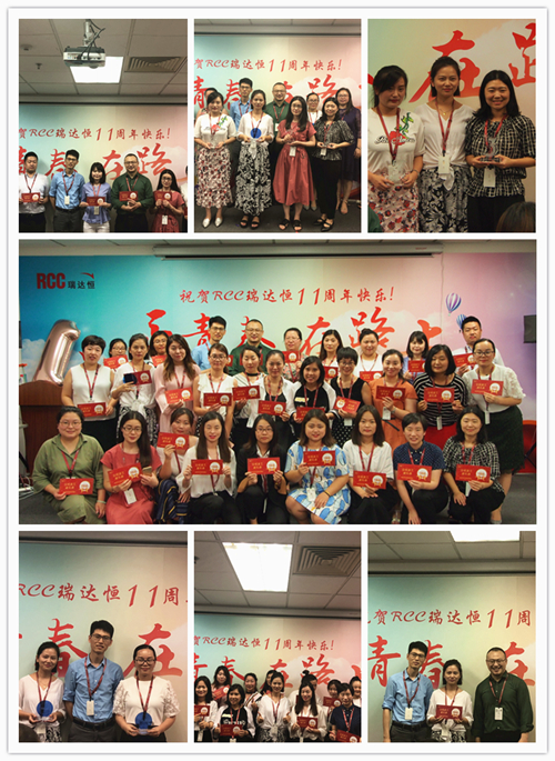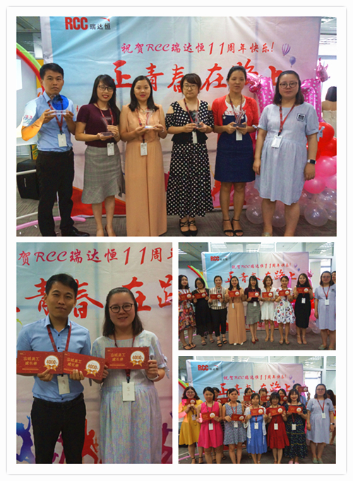 一段由RCC制作的十一周年慶視頻拉開了慶典活動(dòng)的序幕。視頻中,敘寫了這一年來公司取得的驕人成績(jī)與開展的活動(dòng)、PK戰(zhàn)中RCC員工們熱血的場(chǎng)面、客戶對(duì)RCC信息的評(píng)價(jià)片段、CEO在視頻中的致辭等內(nèi)容,震撼著每一名RCC人。RCC在2017——2018年所取得的諸多創(chuàng)新和進(jìn)步、輝煌的成就和永不止步的發(fā)展態(tài)度,讓在場(chǎng)的每一名員工都倍感光榮和自豪。一個(gè)個(gè)輕松活潑的環(huán)節(jié)讓整個(gè)活動(dòng)現(xiàn)場(chǎng)其樂融融,充分展現(xiàn)了RCC大家庭的團(tuán)結(jié)與溫暖,把氣氛推向了高潮。公司領(lǐng)導(dǎo)還為眾多在RCC工作三年或以上的員工頒發(fā)了“忠誠(chéng)員工特殊獎(jiǎng)”,本次的頒獎(jiǎng)把原先贈(zèng)予金器的形式改為發(fā)放面額1000元到4000元的“成長(zhǎng)券”形式,專門用于購(gòu)買圖書、線上課程、健身卡,幫助老員工提升職場(chǎng)專業(yè)技能和能力、鼓勵(lì)他們積極鍛煉,保持健康的體魄。新的獎(jiǎng)品形式不僅代表著公司感謝忠誠(chéng)員工與公司共成長(zhǎng)的情誼,還表明公司對(duì)員工全面發(fā)展的高度重視,公司也將一如既往地為更多有能力、有思想的員工提供更為廣闊的發(fā)展空間。最后,在團(tuán)結(jié)與溫暖氣氛中,在全體RCC員工對(duì)公司的祝福里,公司十一周年慶典活動(dòng)落下帷幕。
